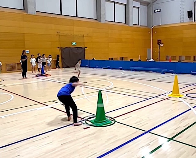 投げる、跳ぶ、走る、遊びの要素を入れながら